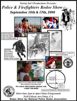 National Police Rodeo Association announces their event line-up for 2007. Seven events are scheduled for our 2007 season says Vice-President Deputy Sheriff Hill Goedhart. We are looking forward to some of the best entertainment we have ever put on for our Southern California communities.